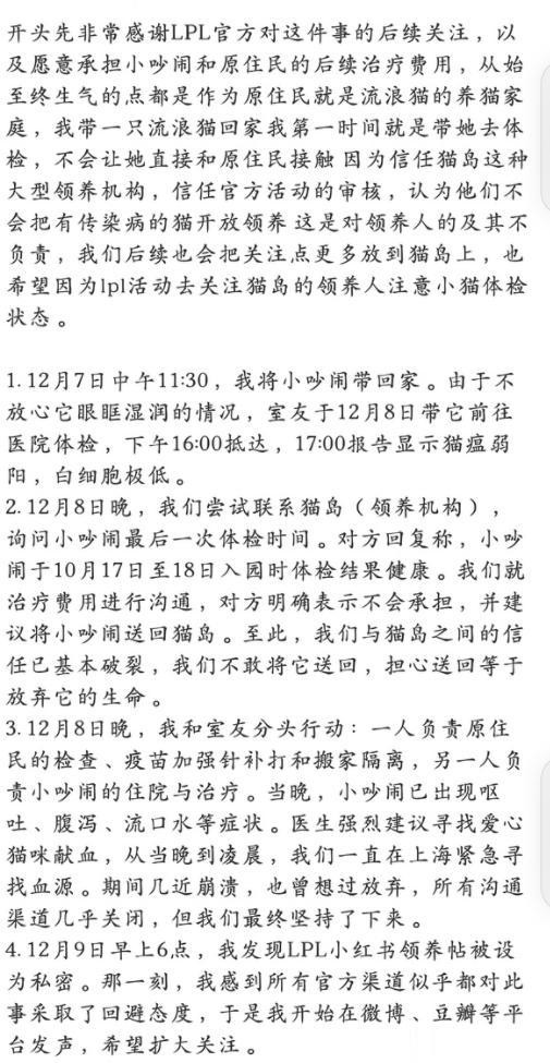 目前,LPL官方已经介入并采取救助措施,这是积极的一步,但仍需要进一步公布调查情况,理清领养前的健康检查是否规范、疫苗流程是否缺失,以及后续如何改进,以免类似事件再次发生。