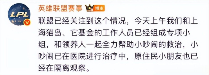 事件曝光后,LPL 官方第一时间发布回应,表示已关注此事,并为小猫启动救助措施,然而,网友并不买账,质疑声在社交平台发酵:“为什么被领养的小猫,没有接种任何疫苗?”更有人反向追问领养者:“既然家里原本就有猫,为什么那只猫也没有接种疫苗?”